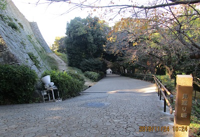 This slope is quite long and steep, but at the end of the slope, we can find the most magnificient scenery of Marugame Castle.